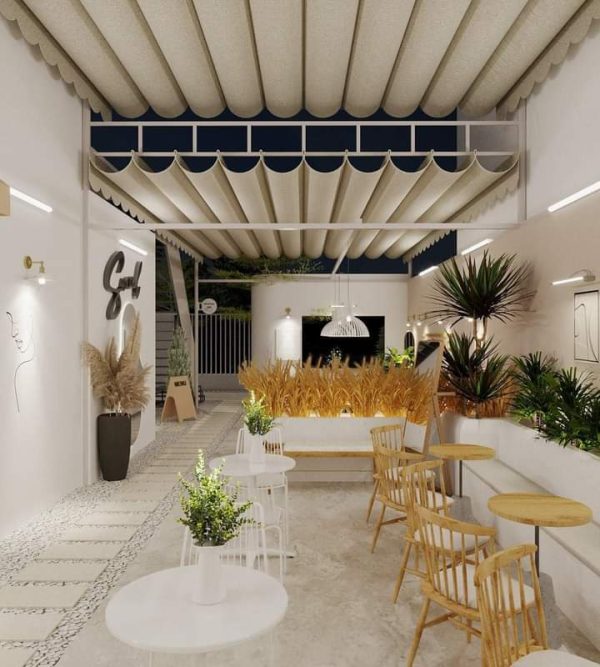 Mái xếp nhà hàng, mái xếp quán cafe sân vườn